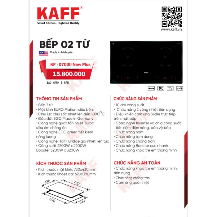 Với hơn 10 năm hoạt động tại Việt Nam, bếp điện từ KAFF ngày một khẳng định vị thế dẫn đầu về uy tín, chất lượng và thương hiệu của mình với hơn 50 000 sản phẩm bán ra mỗi năm.